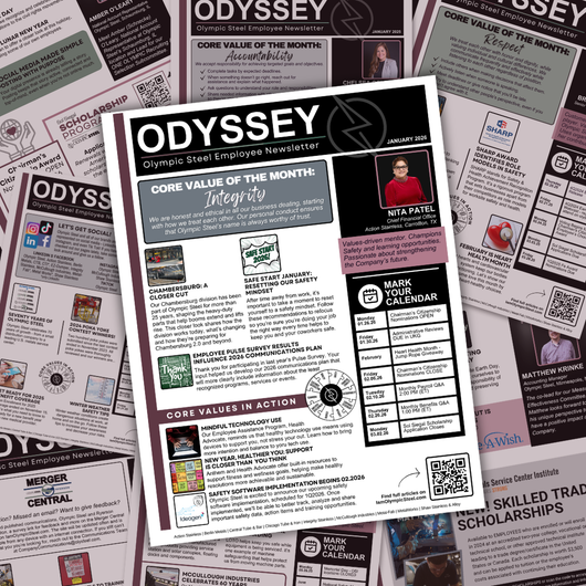 Each month, we'll share feature articles in the following categories: Industry and Our Business, Safety, Benefits, our Core Values in Action, plus a rotating feature, Social Media Made Simple or a Referral Success Story. Plus, a ONE OLYMPIC Team Member Spotlight!